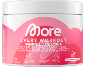 MORE Every Workout 4.0 is a pre-workout drink in powder form to support training and everyday life. The formulation combines specifically selected ingredients for pump, focus and performance - without unnecessary overloading.